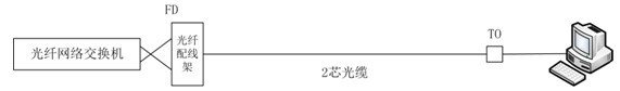 依据图1可以看出,对于一个位于工作区的光纤信息信息点而言,1根2芯的光纤光缆形成了FTTD的主体,在它的两端,左边是光纤配线架,右边是光纤信息插座(光纤面板)。在左边,由于光纤网络交换机的常规端口与光纤配线架的端口基本一致,所以在系统中只需要一个光纤配线架,使用光纤跳线连接到光纤网络交换机的端口上;在右边,光缆通过墙面(或地面、桌面)的光纤插座(光纤面板),使用光纤跳线连接到台式电脑的光纤网卡上。这就完成了一个最基本的FTTD传输。