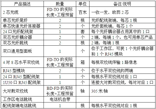 当根据表1将所有的FTTD信息点所需要的布线材料统计完毕并注明产品的型号/规格后后,FTTD设计工作基本告一个段落。