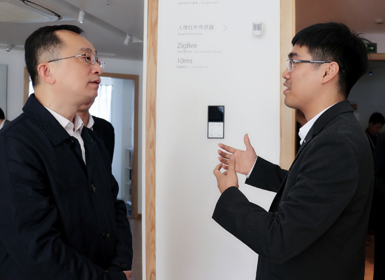 在听取欧瑞博方面的介绍后,陈敏书记对欧瑞博所取得成就表示高度的赞赏,对欧瑞博在智能家居领域砥砺前行,潜心研发表示由衷的钦佩。他希望欧瑞博作为领先的智能家居企业应充分发挥自身技术、人才等方面的优势,将人工智能、大数据技术更多应用到梅州的相关产业,助力梅州高新技术产业加速向前发展。