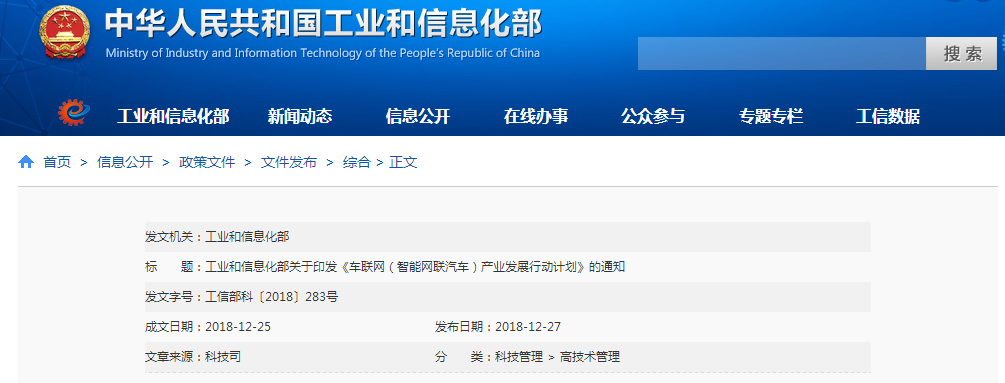 12月27日,工业和信息化部印发《车联网(智能网联汽车)产业发展行动计划》,旨在加快车联网(智能网联汽车)产业发展,大力培育新增长点、形成新动能。具体内容如下:
