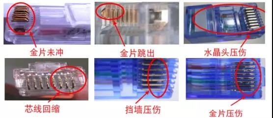 我这举的还只是水晶头出问题的例子,还有线没到位、线被压歪甚至压断等就不多说了。如果水晶头金片压接出问题时直接插入设备将直接造成设备端口损坏,交换机端口损坏的大部分原因就是来源于此。