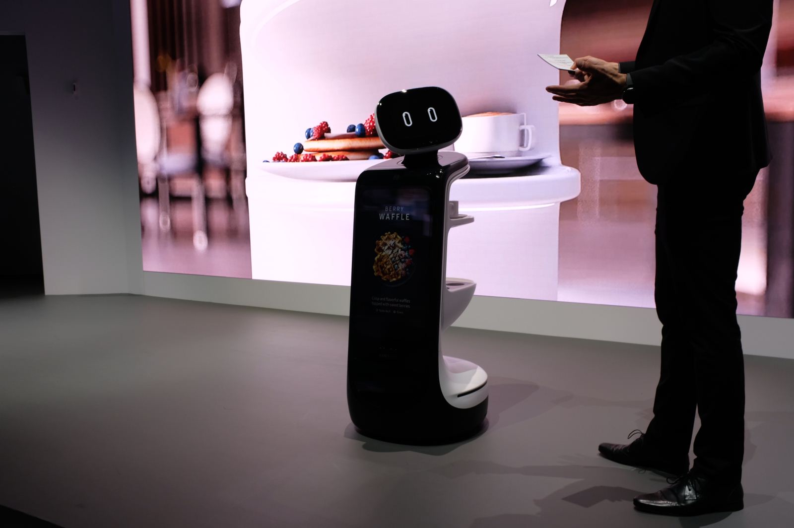 另外,Bot Retail则是一大亮点,它有一个触摸屏,可以进行点餐,后面有一个托盘,可以送食物和其他物品,在未来将会出现在零售店中。