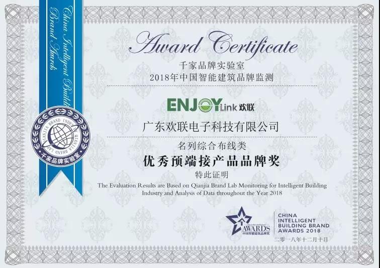 2018年优秀预端接产品品牌奖
