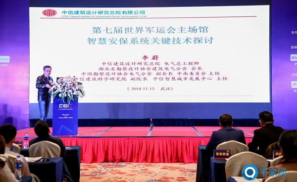 会上,中信建筑设计院总院有限公司电气总工程师/研究院副院长李蔚分享主题为《第七届世界军运会主场馆智慧安保系统关键技术探讨》的演讲,重点讲述了第七届世界军人运动会主场馆东西湖体育中心的智慧安保总体建筑方案和智慧安保系统设计。