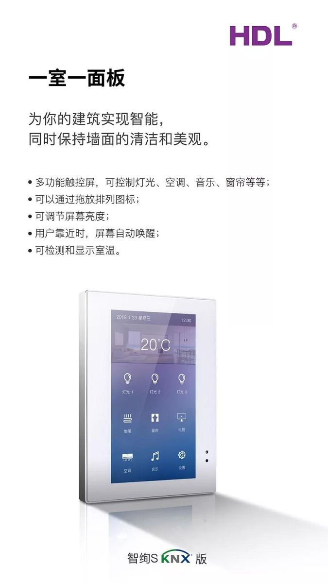 今日,HDL智绚S触控屏面板正式发布KNX版。