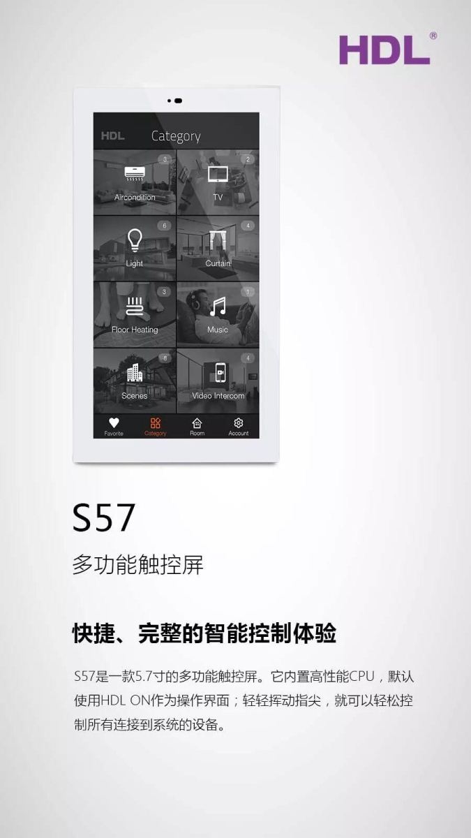 [导读]一款5.7寸的多功能触控屏。它内置高性能CPU,默认使用HDL ON作为操作界面,轻轻挥动指尖,就可以轻松控制所有连接到系统的设备。