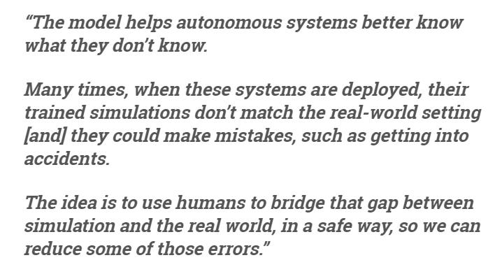 很多时候,当这些系统被部署时,他们经过训练的模拟与现实环境不匹配,他们可能会犯错误,比如发生事故。