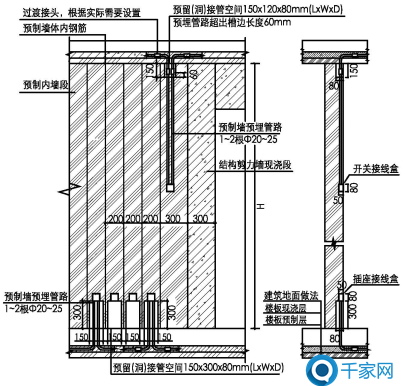 装配式建筑关键的技术在于预埋线管模式,目前装配式建筑存在两种预埋线管的方法:一是施工现场现浇层内预埋线管,但需增加现场湿作业工作量,存在定位问题;二是在工厂预制构件中预埋线管,可以减少现场工作量,需要定位准确。