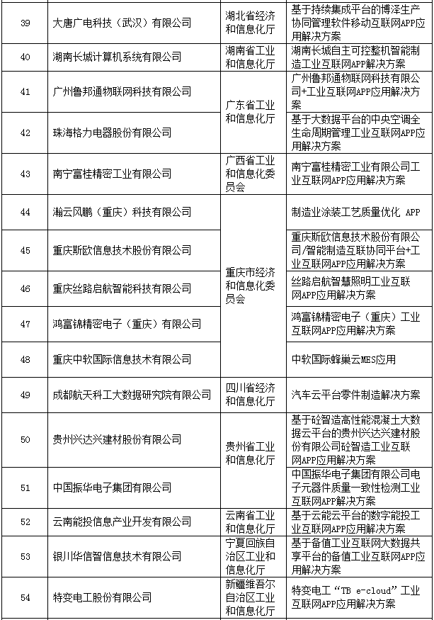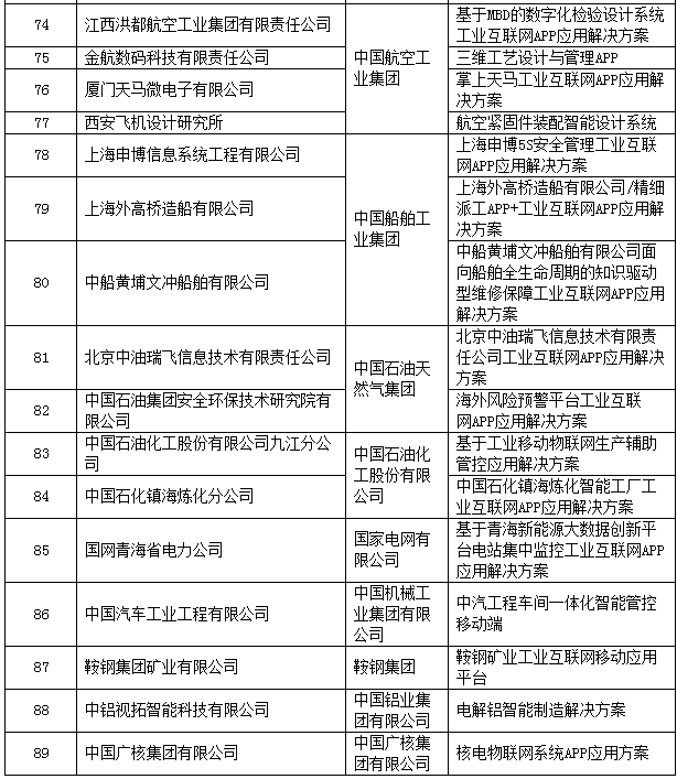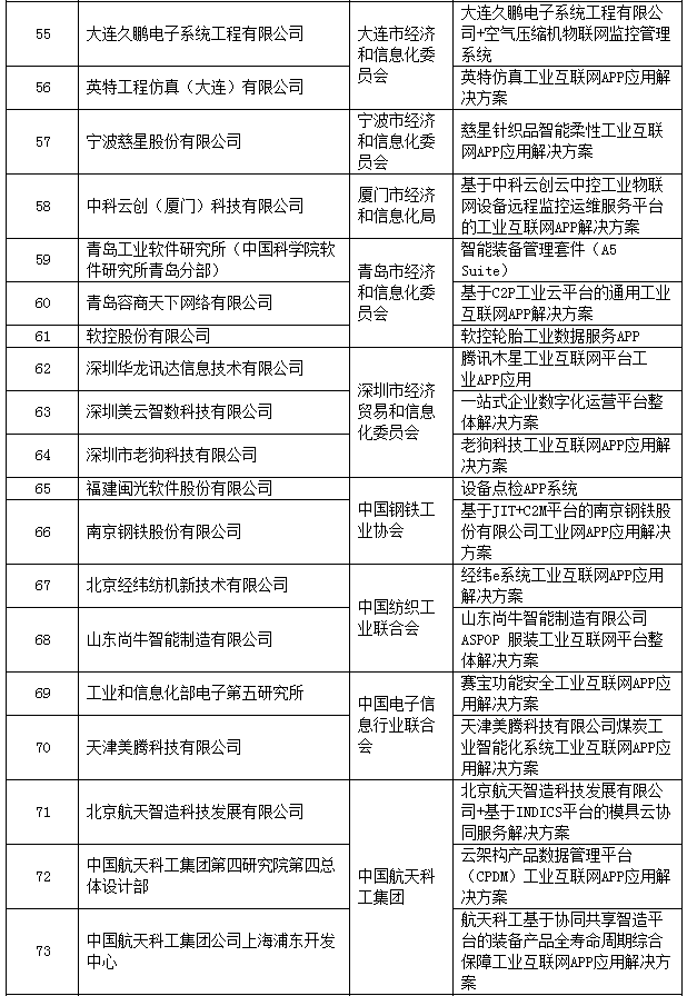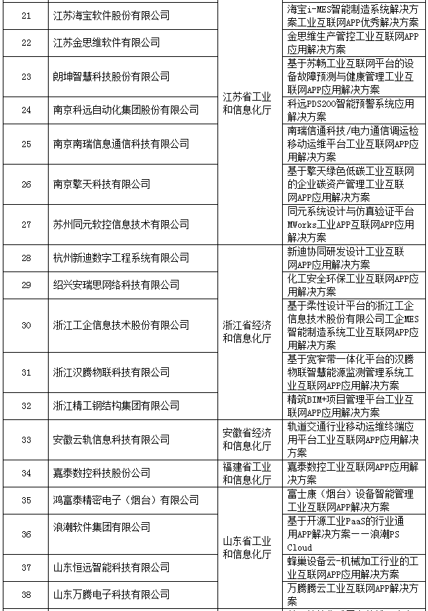 2018年工业互联网APP优秀解决方案公示名单