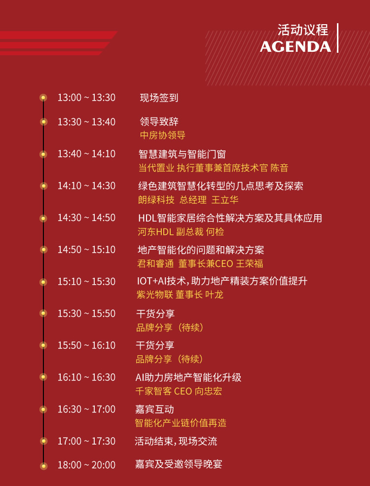 本次论坛将诚邀地产开发公司总工、采购、项目管理、建筑工程商、采购预算及造价师、商、弱电工程师、房地产开发商、家居建材提供商、装修设计师、风险投资机构、智能产品爱好者、智能品牌企业、技术研发人员、专家学者、行业分析师、券商、设计院、酒店、家电、医疗、消费电子类渠道商、经销代理商、运营商等相关行业人士出席参会。