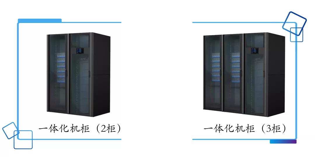 一体化系列模块化机柜产品一般常规有单柜,双柜,三柜共3种基本配置可选,其容量有3KW,6KW,10KW,20KW四种组合配置,基本可以满足各种分支机构的机房基础设备需求,其精密空调的安装方式主要以模块化为主。当然也可以使用行间精密空调的冷却形式,机柜的数量也可根据需求增加并柜数量,但通常不会超过8台;