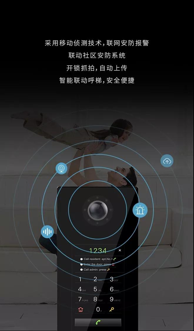 基于云平台和大数据智能系统,这款产品将GVS视声原有的数字系统升级到云端,以云对讲APP为基础,用户不仅可通过手机进行远程对话和开锁,还可通过二维码、刷卡和随机密码开锁,为人们带来更加简单便捷的可视对讲生活。同时,产品配备了自主的用户管理系统,为物业公司和小区管理带来便利。